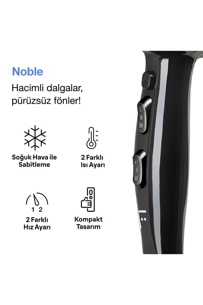 Teknik Özellikleri:• Model: Noble Ac Motor Saç Kurutma Makinesi• Watt: 2200• Voltaj: 220-240V• Motor Tipi: AC• Isı Ayarı: 3• Hız Ayarı: 2• Soğuk Hava Ayarı: Var• İyon: Var• Çıkarılabilir Filtre Kapağı: Var• Difüzör Başlığı: Var• Asma Halkası: Var