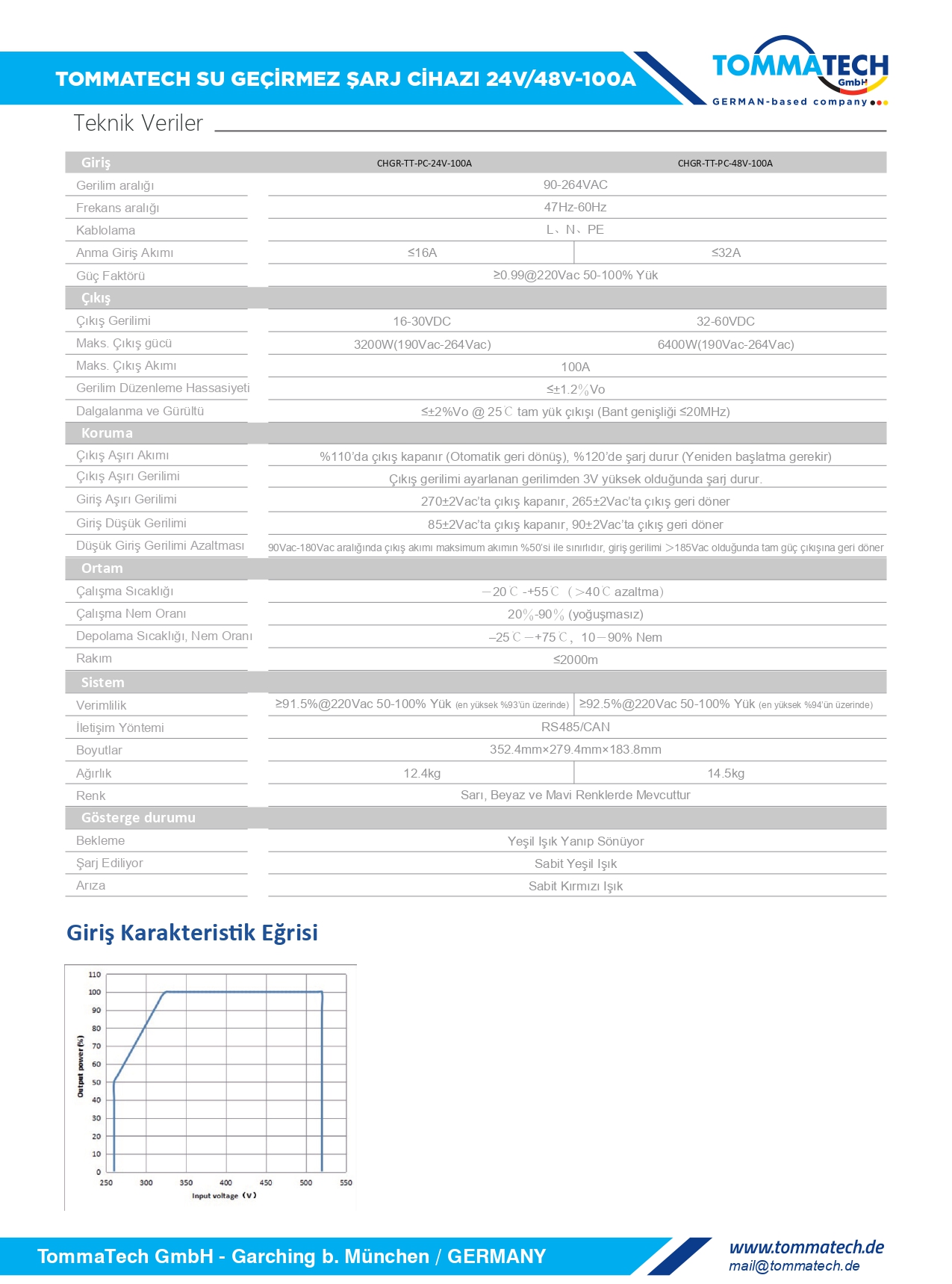 Teknik Kullanım AçıklamasıBu şarj ünitesi, LFP (LiFePO₄) ve NMC batarya gruplarıyla uyumlu olarak çalışır. Cihaz, sabit akım ve sabit voltaj modlarında otomatik geçiş yaparak batarya hücrelerinin dengeli şarj edilmesini sağlar. Geniş giriş voltaj aralığı sayesinde endüstriyel ortamlarda kararlı performans sunar. Şarj profili, batarya özelliklerine göre ayar yapılabilir ve RS485/CAN arayüzleri üzerinden sistem izleme mümkündür.